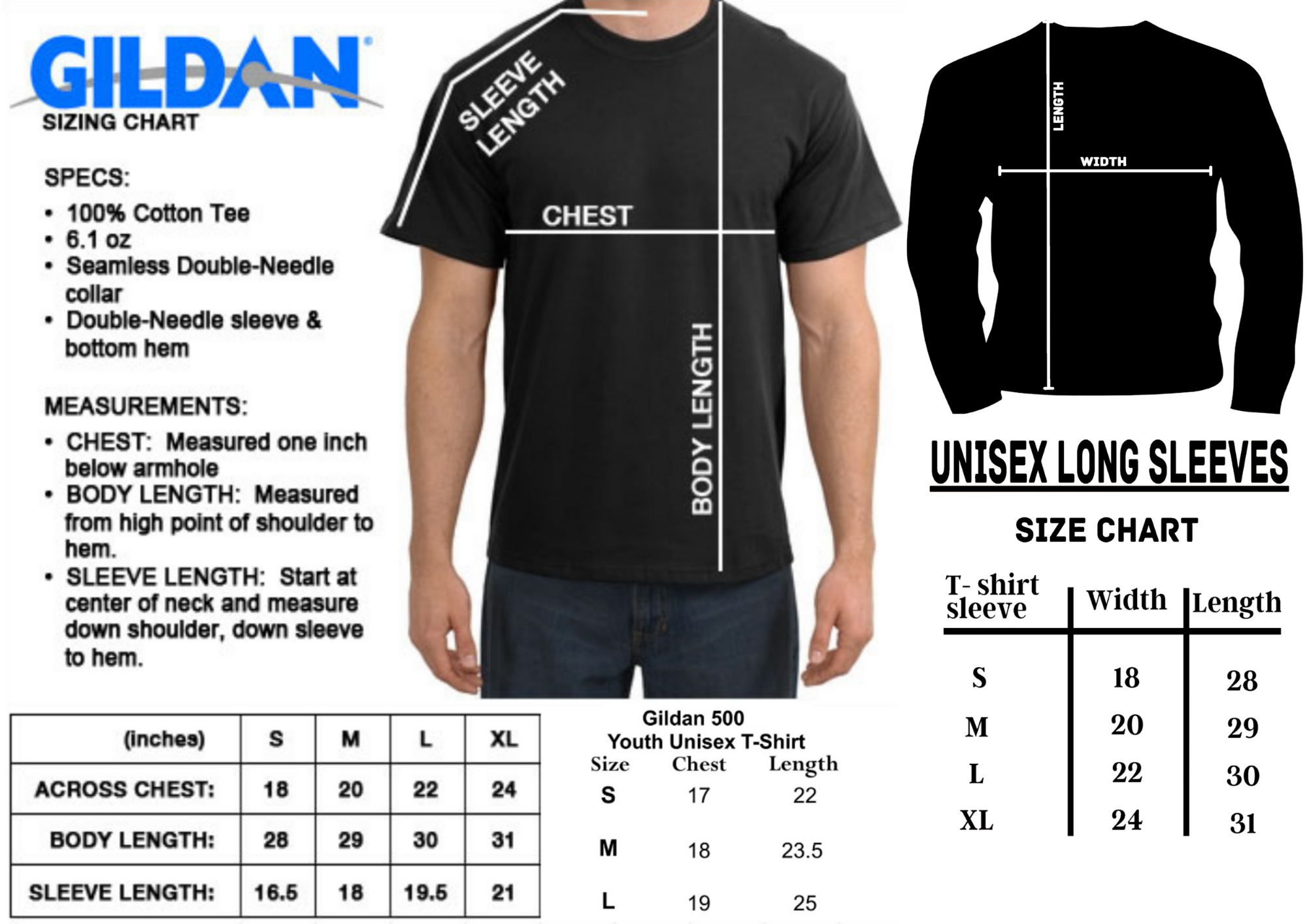 SIZING: Please go to the the Gildan's size chart on the photo section.  Adult size tshirts are UNISEX. Fit might be larger than regular ladies tshirts.